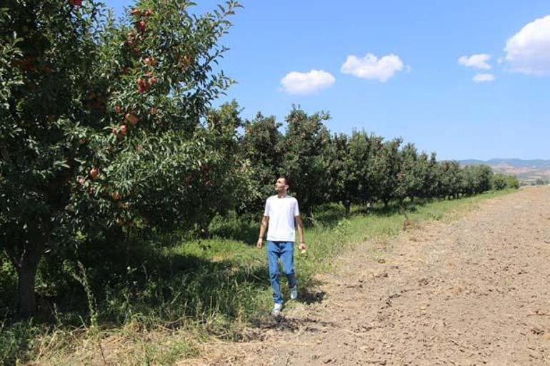 Elma çiçeklerini aşırı soğuktan dumanlama ve bitki antifriziyle korumayı başaran 30 yaşındaki çiftçi Furkan Tokmak, ağaçlarının yazın aşırı sıcaklarından etkilenmemesini de bahçesini sarıp uzayan yabani otların oluşturduğu nemlenme sayesinde sağladı.